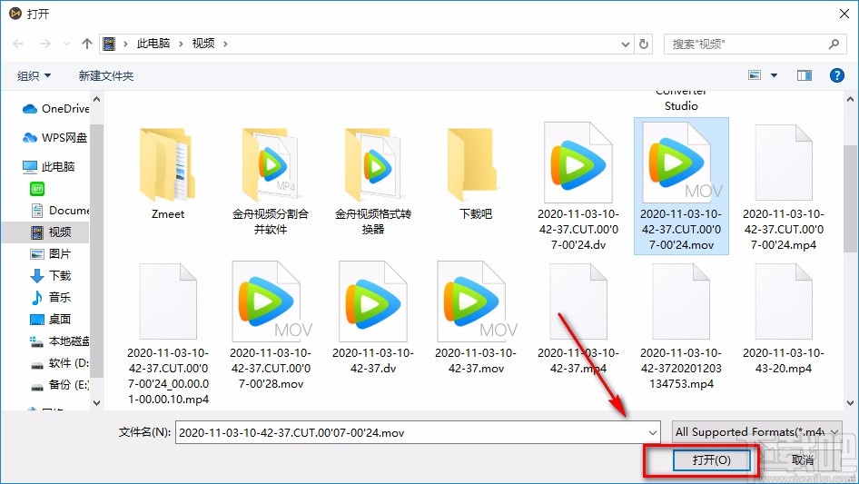 2.在文件添加页面中,我们将需要添加标签的视频文件选中,再点击页面右下角的“打开”按钮即可。
