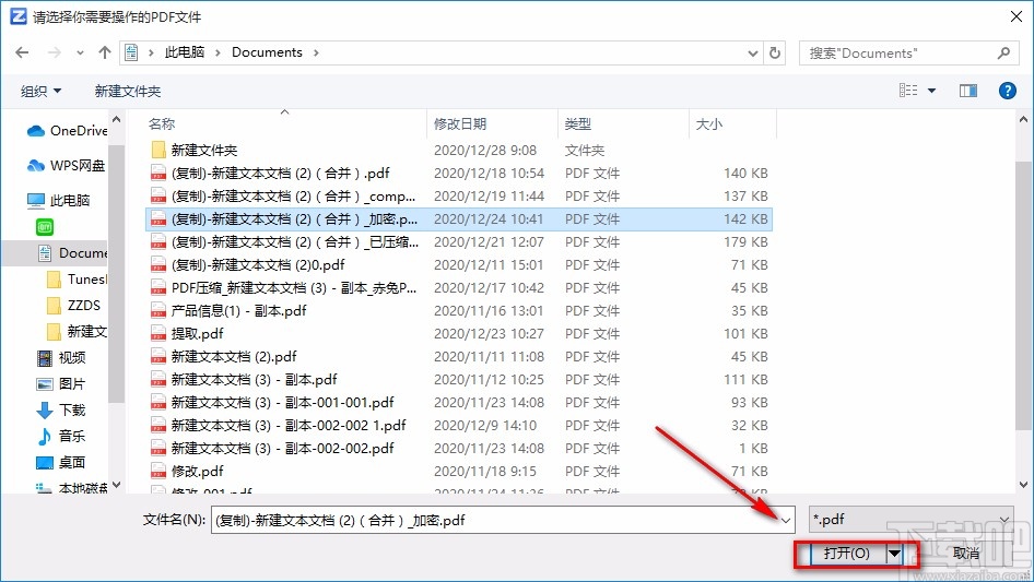 3.然后就会进入到文件添加页面,我们选中需要进行解密的PDF文件后,再点击页面右下角的“打开”按钮就可以了。