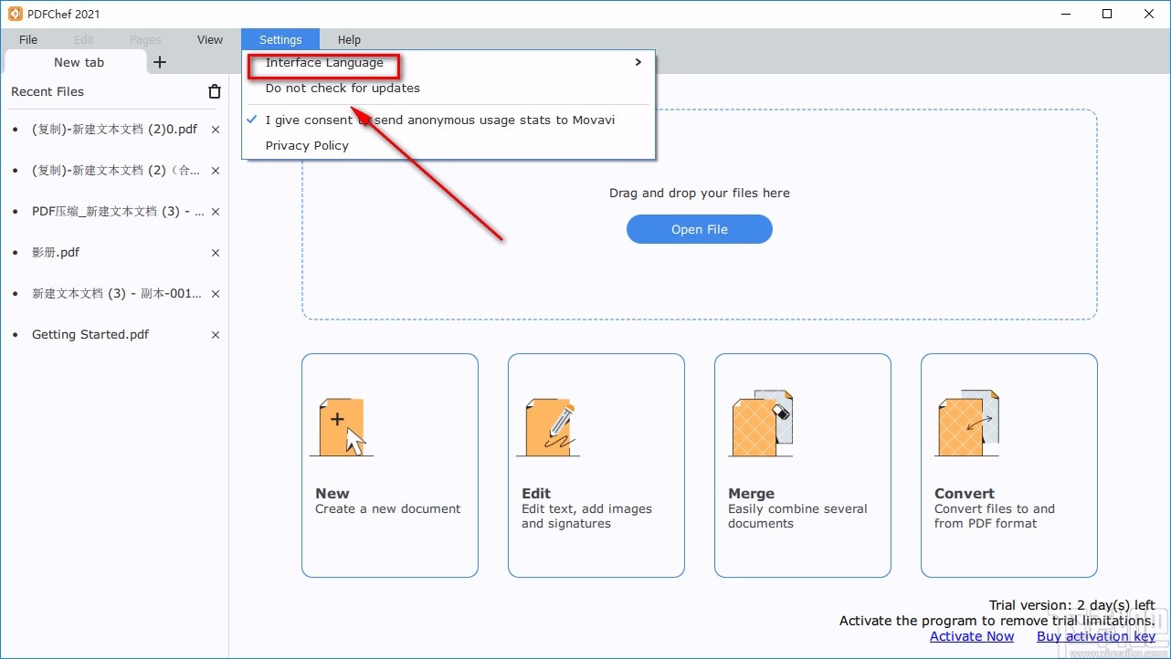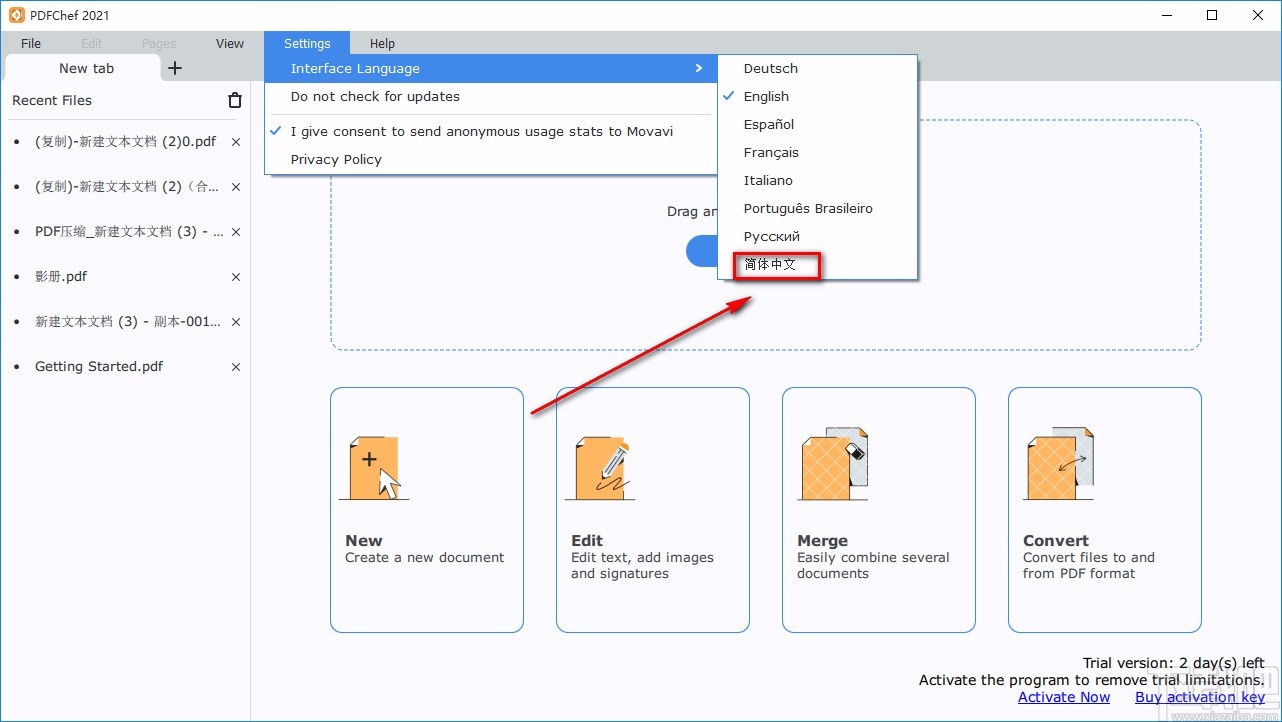 以上就是小编给大家整理的Movavi PDFChef设置中文的具体操作方法,方法简单易懂,有需要的朋友可以看一看,希望这篇教程对大家有所帮助。