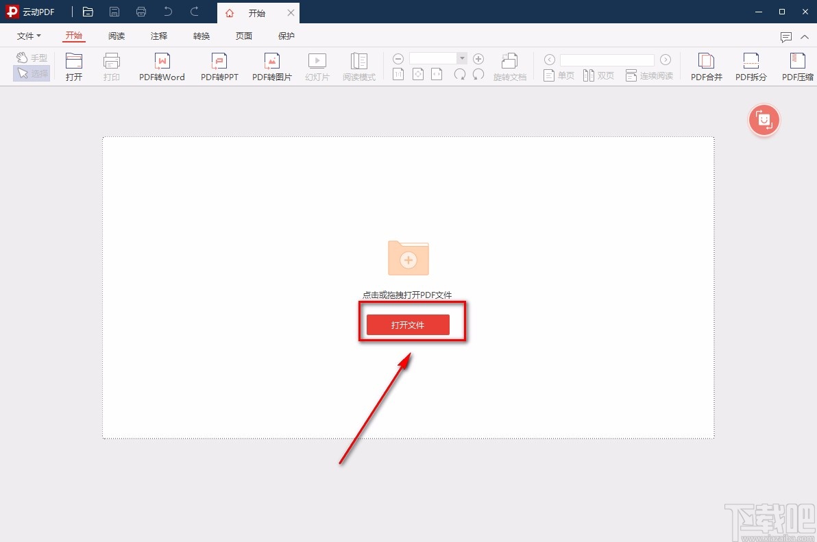 1.首先打开软件,我们在界面正中间找到红色的“打开文件”按钮,点击该按钮就可以打开文件添加页面。