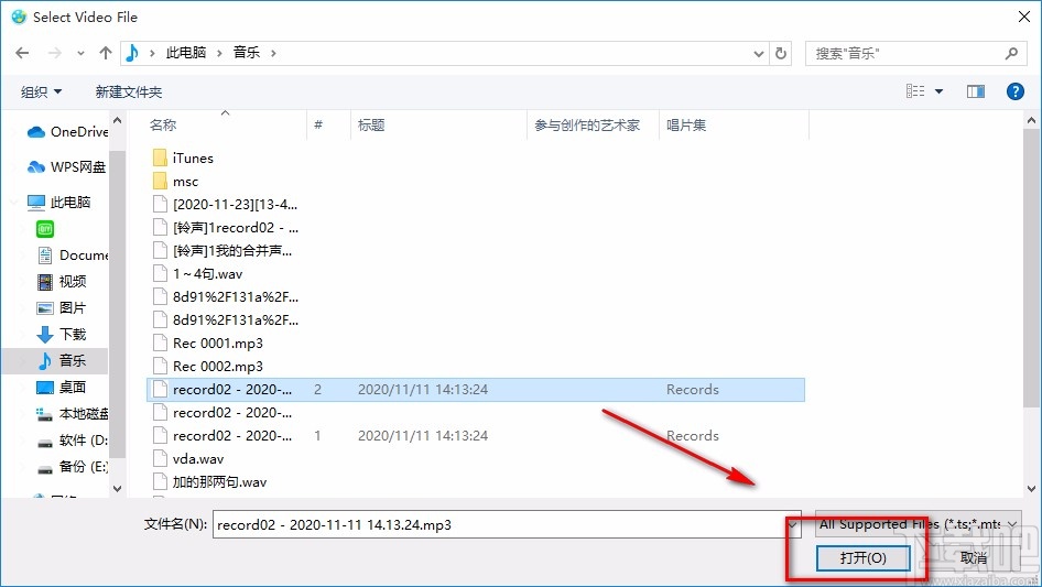 2.接着在文件添加页面中,我们选中需要转换格式的音频文件后,再点击页面右下角的“打开”按钮即可。