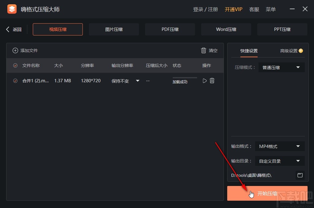 8.选择之后最后一步我们就可以点击界面右下角的这个开始压缩按钮开始压缩视频的操作了,等待压缩完成即可。