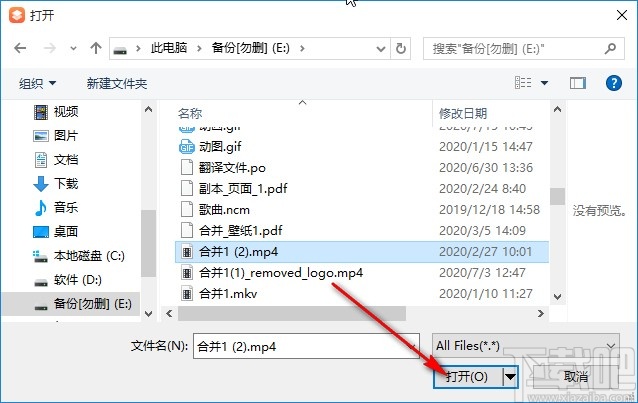 3.接下来再下一步我们就可以打开添加文件的界面了,我们在其中选择想要压缩的视频文件,选中之后点击右下角的打开按钮。