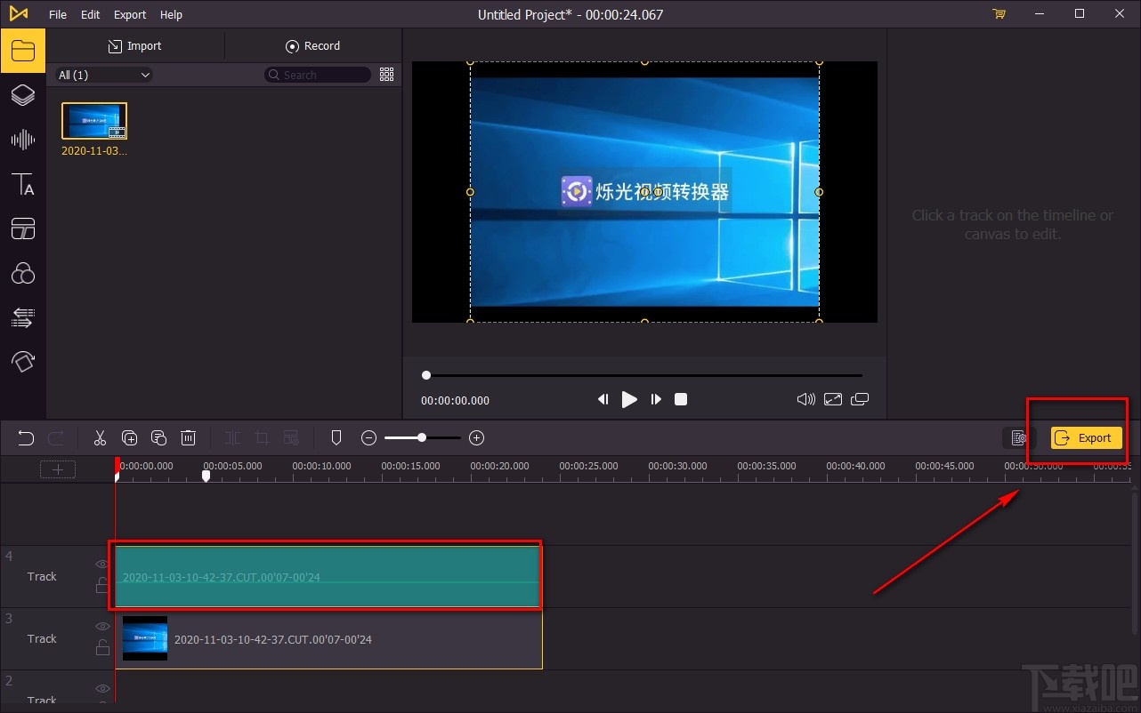 6.最后我们选中音频轨道,再点击界面右侧的“Export”按钮,就可以将音频导出软件了。