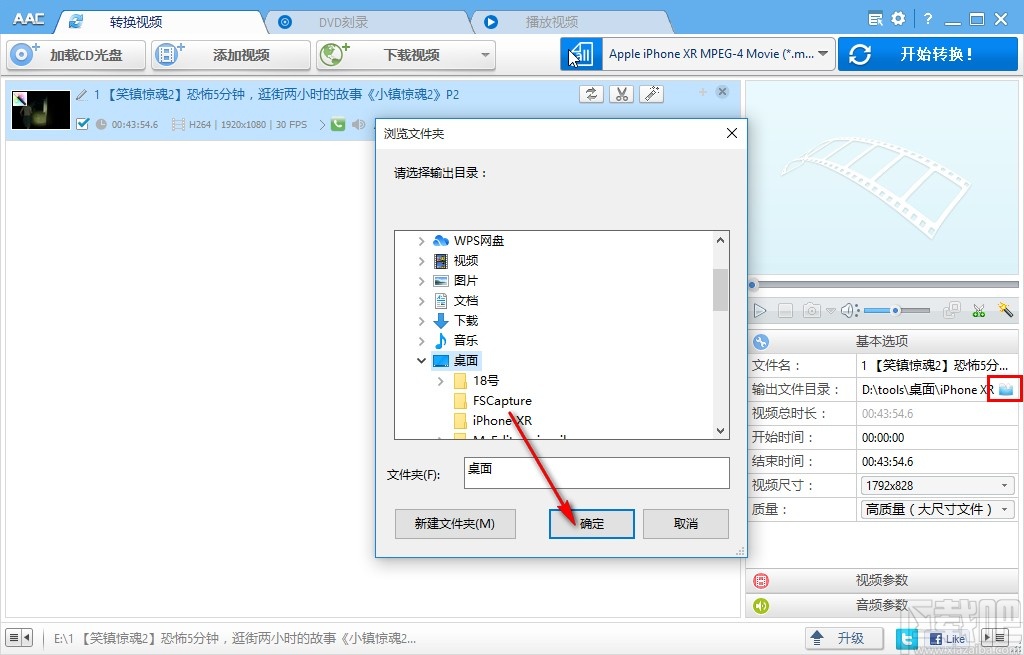 6.确定修改这个功能之后,回到软件主界面,点击右边的文件夹图标,点击之后在出现的界面中选择输出路径,点击确定按钮。