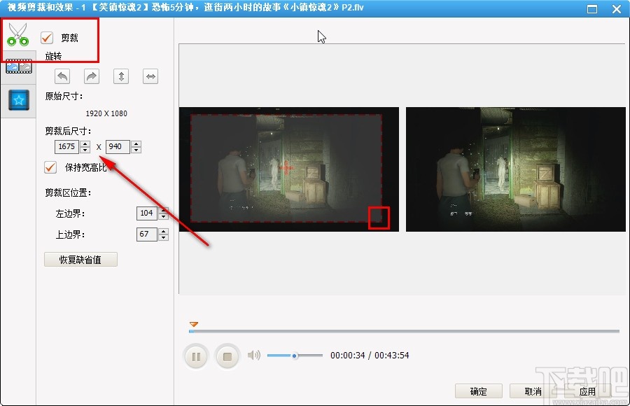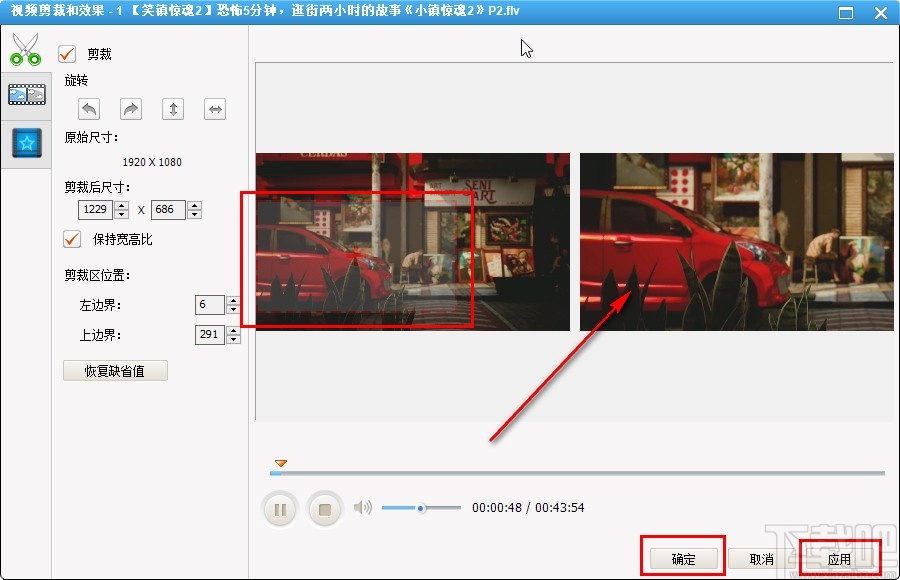 5.裁剪好尺寸大小之后,右边显示的画面就是裁剪之后的尺寸画面,点击右下角的应用按钮应用裁剪操作,点击确定按钮之后即可确定修改这个功能。