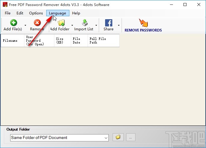 以上就是小编今天跟大家分享一下在Free PDF Password Remover 4dots这款软件中设置中文界面的具体操作方法吧,感兴趣的朋友不妨一起来看看这篇教程,希望能帮到大家。
