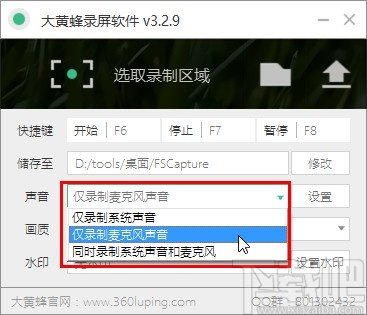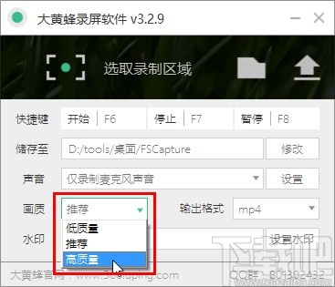 4.设置好录制声音的参数之后,下一步可以点击画质选项对录制视频的画质进行设置,如下图中所示。