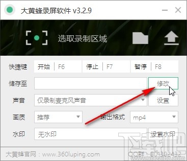 1.首先我们打开软件之后,先点击界面中的修改按钮,设置录制的视频保存位置,这样方便录制完成之后查找视频。