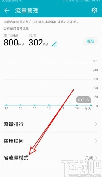 4.点击进入到这个流量管理界面之后,我们找到界面最下方的“省流量模式”这个功能选项,点击进入到这个功能的界面中。