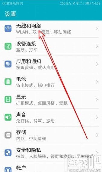 2.进入到手机的设置界面之后,在界面中找到无线和网络这个设置选项,点击可以进入到无线和网络设置界面。