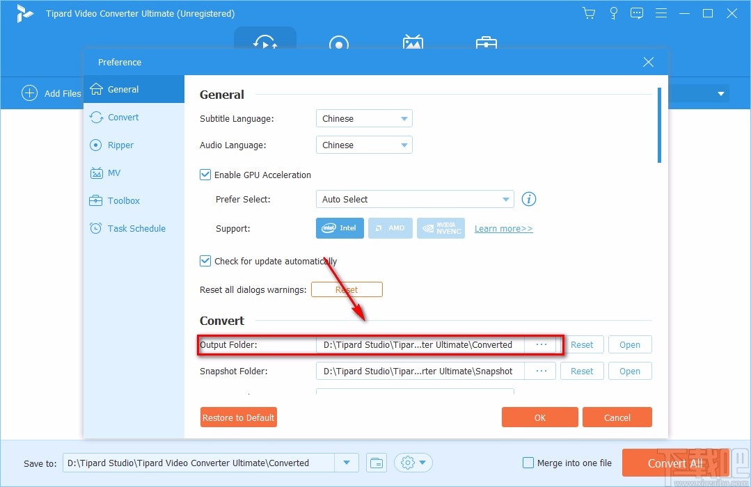 以上就是小编给大家整理的Tipard Video Converter设置格式转换默认保存位置的具体操作方法,方法简单易懂,有需要的朋友可以看一看,希望这篇教程对大家有所帮助。