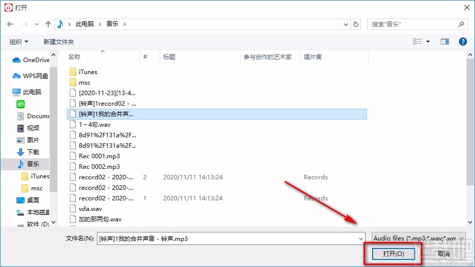 3.在文件添加页面中,我们选中需要转为文字的语音文件,再点击页面右下角的“打开”按钮就可以了。