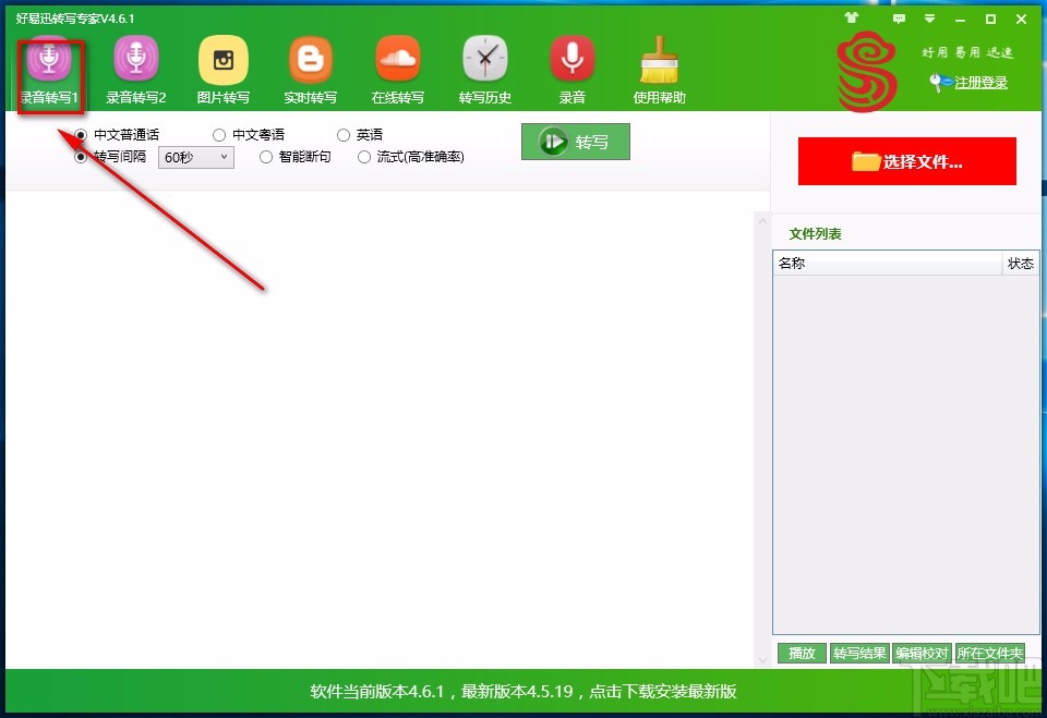 1.首先打开软件,我们在界面左上角找到“录音转写1”选项,点击该选项进入到录音转写页面。