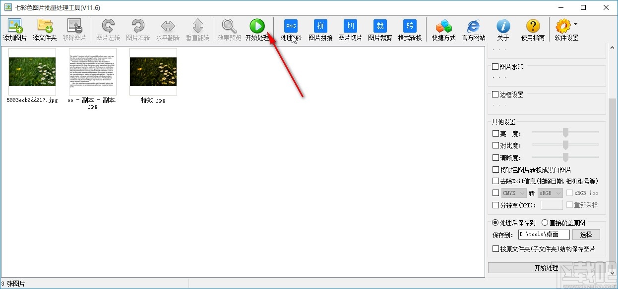 7.最后设置好输出保存图片的路径之后,在界面上方找到开始处理这个功能按钮,点击之后即可开始调整图片大小。