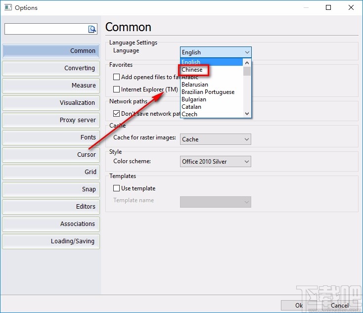 5.接下来在界面上方就能找到“Language”选项,该选项表示语言的意思,点击该选项后面的下拉按钮,在下拉框中选择“Chinese”选项。