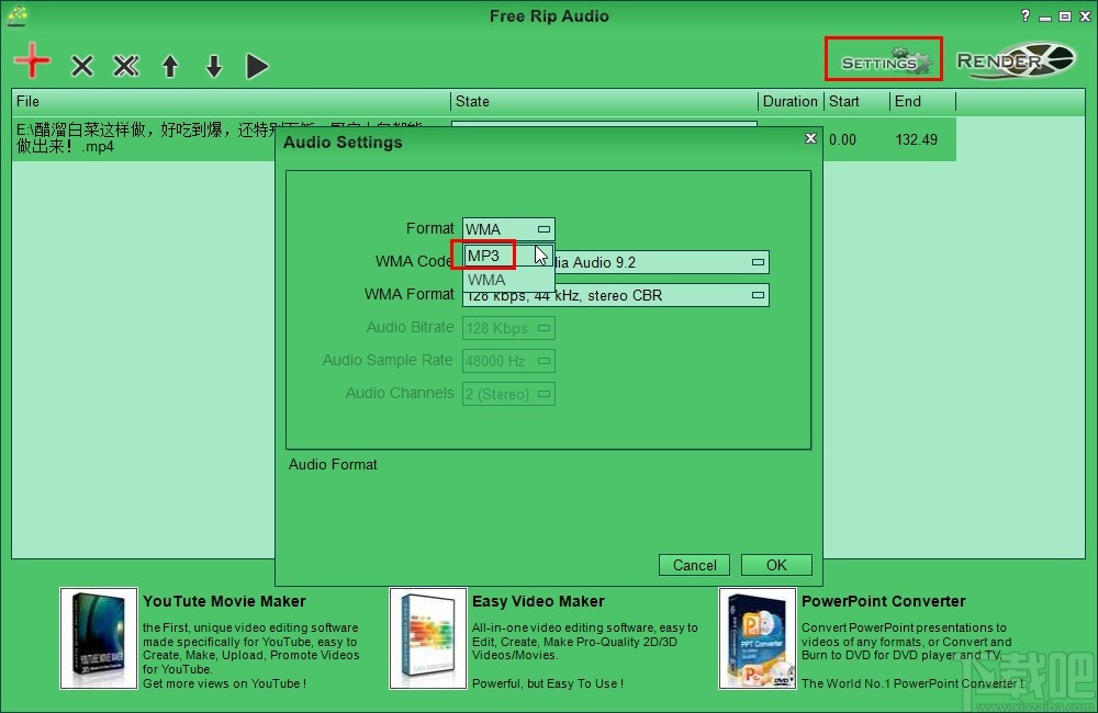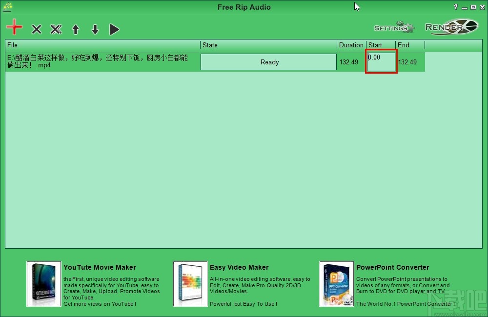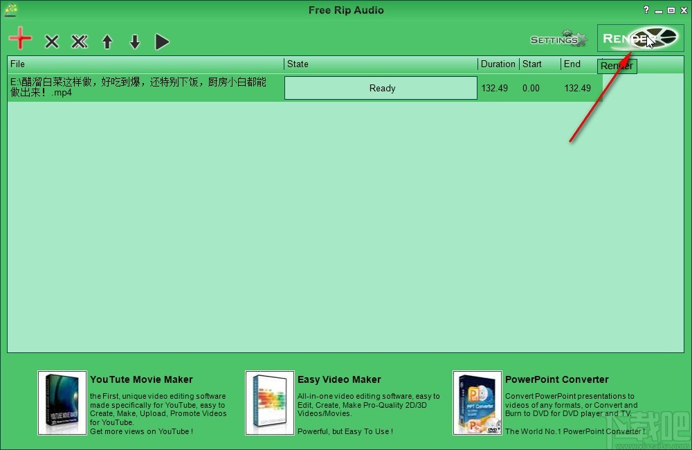 6.最后在设置好想要提取音频的一些参数之后,我们在界面的右上角点击Render这个按钮即可开始提取音频文件的操作,等待提取完成即可。