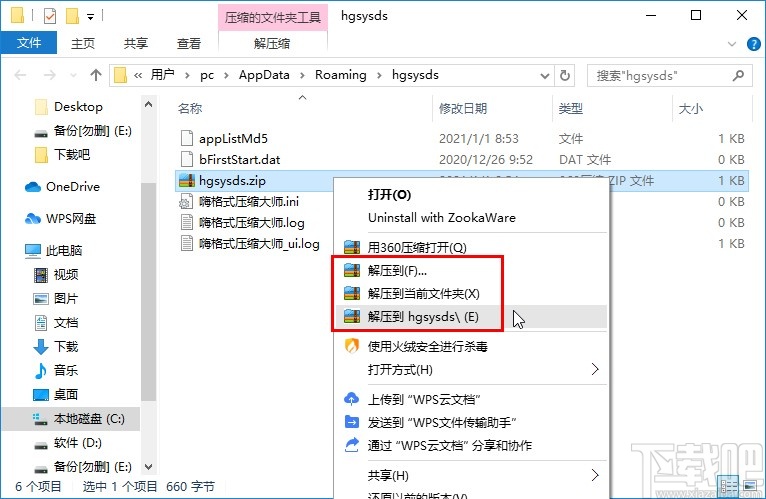 4.使用鼠标右键点击压缩包之后,选择一个解压方式,将压缩包解压之后就可以获得其中的日志文件了。