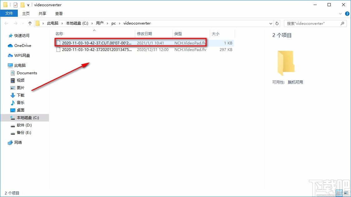 7.视频格式转换完毕后,界面上就会自动弹出视频的输出文件夹,这时候在文件夹中就能查看转换格式后的视频。