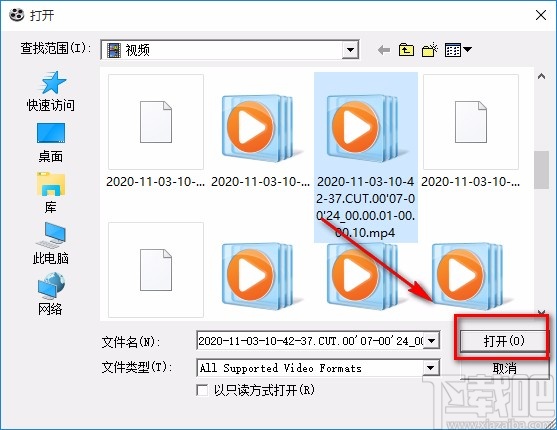 2.接着在文件添加页面中,我们选中需要转换格式的视频文件后,再点击页面右下角的“打开”按钮即可。