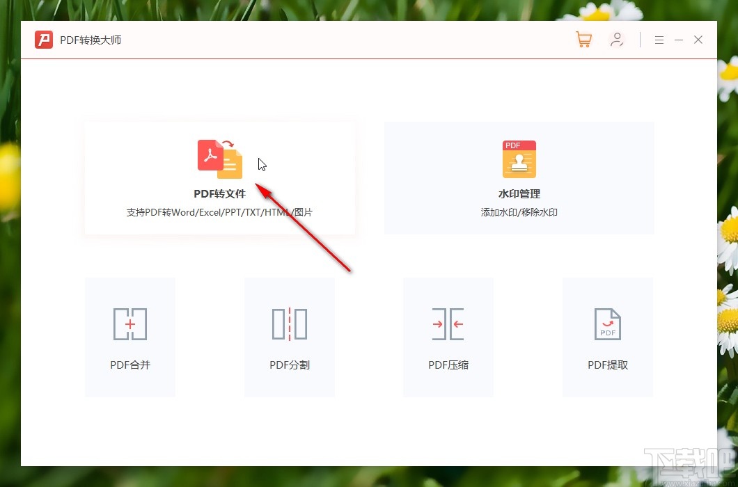 1.首先第一步我们打开软件之后,在软件界面中找到PDF转文件这个模块,找到之后点击进入到其中。