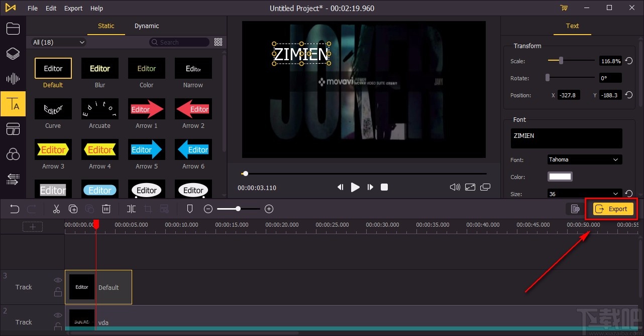 9.完成以上所有步骤后,我们在界面右侧找到“Export”按钮,点击该按钮就可以将视频导出软件了。