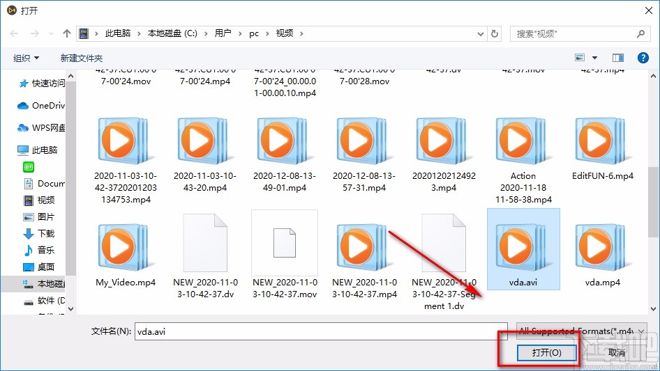2.接着在文件添加页面中,我们选中需要添加字幕的视频后,再点击页面右下角的“打开”按钮即可。