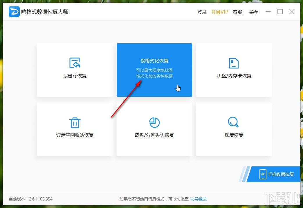 1.首先第一步我们打开软件之后,在界面中找到误格式化恢复这个模块,找到之后点击进入到其中。