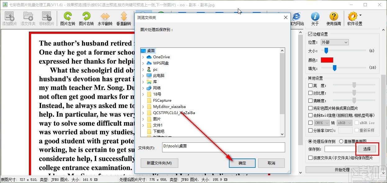 6.点击这个确定按钮设置好颜色之后,在右边的保存路径选项中,点击选择这个按钮之后,在出现的窗口中选择输出保存路径,如下图中所示。