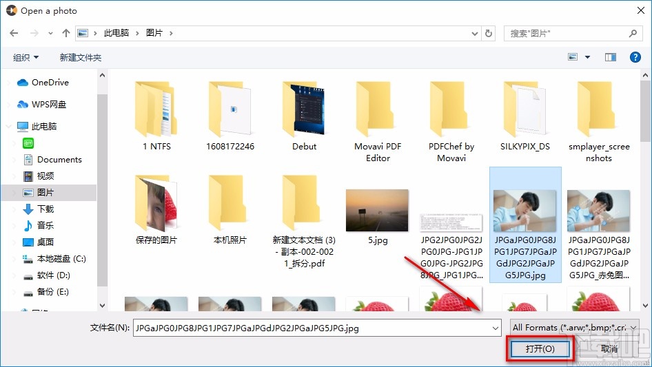 3.在文件添加页面中,我们将需要放大的图片文件选中后,再点击页面右下角的“打开”按钮就可以了。