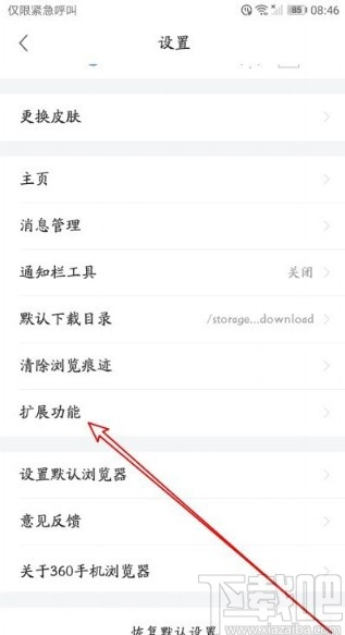 3.点击这个设置选项之后,我们在出现的界面中就可以看到有一个扩展功能选项了,点击可以进入到扩展功能界面。