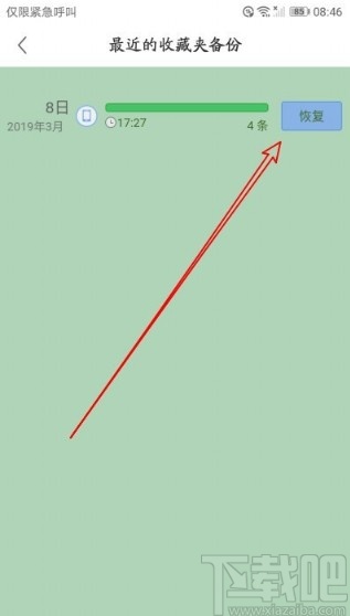 5.进入到恢复收藏夹的功能界面之后,我们可以看到当前能够恢复的收藏夹,点击它右边的恢复按钮进行恢复即可。
