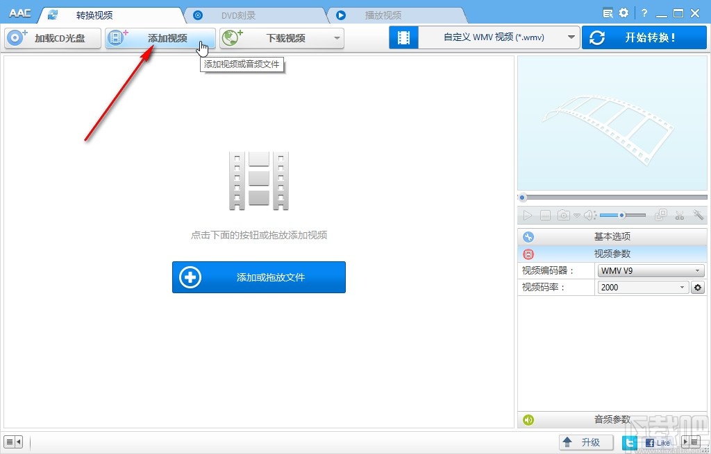 1.首先第一步我们打开软件之后,在软件界面上方找到添加视频这个功能图标,找到这个图标之后点击进入到其中。