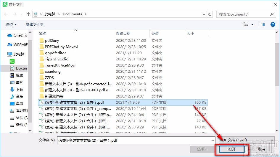 2.接着在文件添加页面中,我们选中需要提取页面的PDF文件,再点击页面右下角的“打开”按钮就可以了。