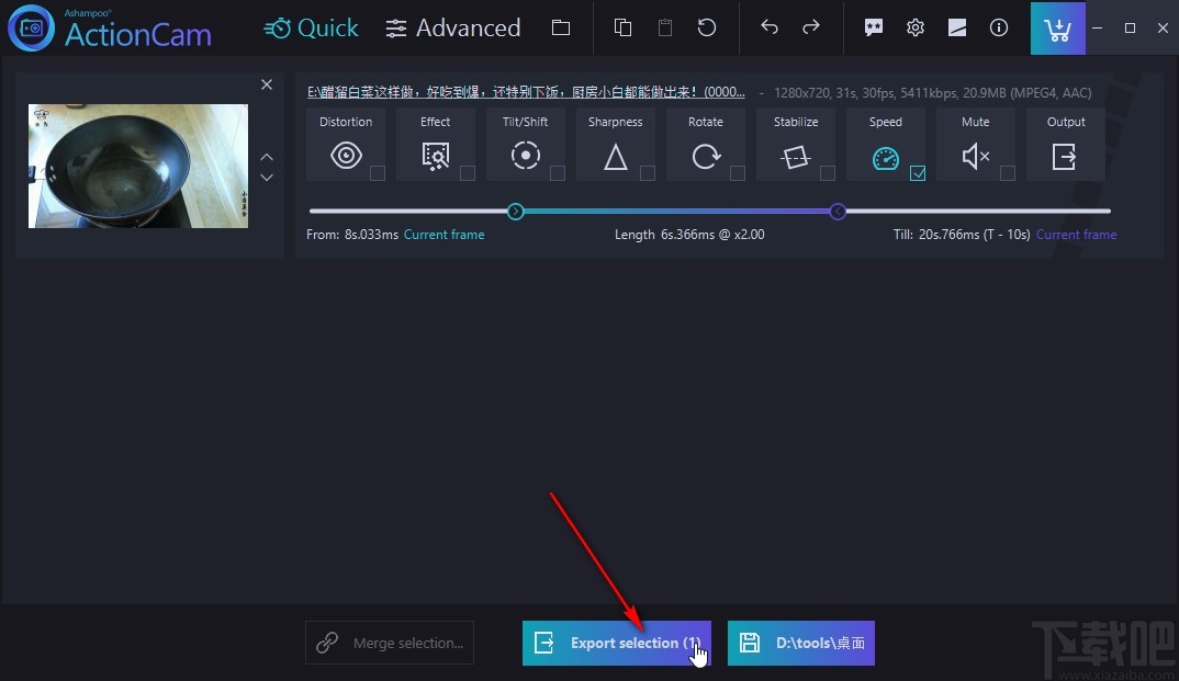 6.最后一步我们只需要在界面的下方找到Export selection这个选项,找到之后点击它将处理的视频导出保存下来即可。