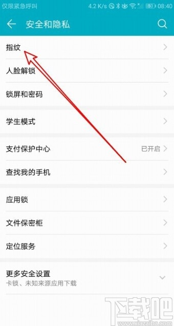 3.下一步进入到这个设置界面之后,我们在界面中可以看到指纹这个设置选项,然后点击进入到其中。