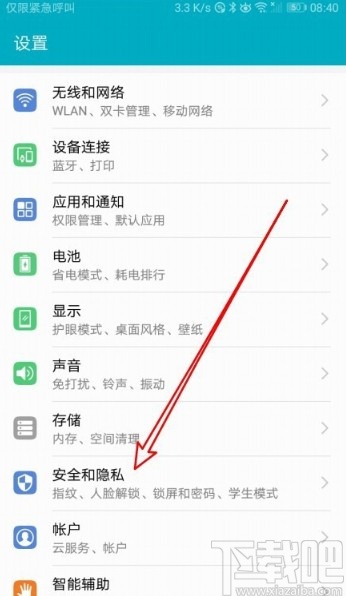 2.进入到手机的设置界面之后,我们在界面中找到安全和隐私这个设置模块,然后点击进入到这个设置界面。