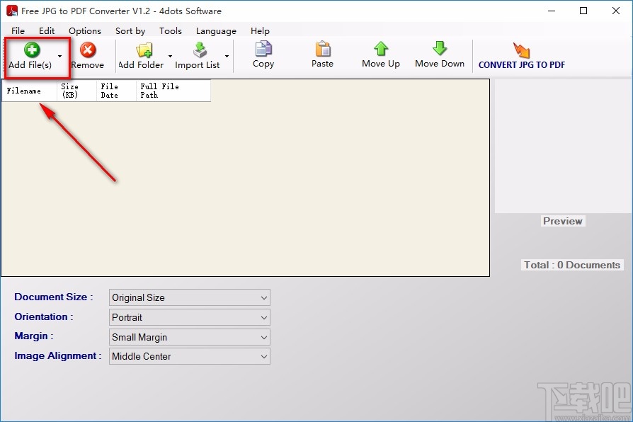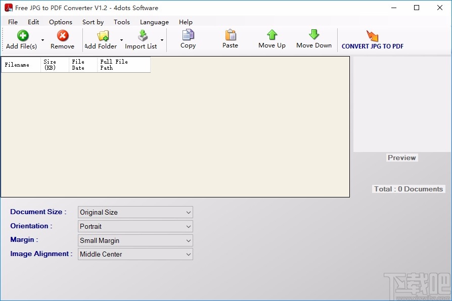 Free JPG to PDF Converter是一款非常不错的图片转PDF软件,该软件体积小巧,启动速度非常快,并且拥有简单直观的操作界面,可以帮助用户轻松快速的将JPG图片转为PDF文件。我们在日常的办公生活中,常常需要传输一些图片给他人。为了保证在传输过程中不破坏图片内容,很多朋友会选择将图片转为PDF文件,所以一款好用的图片转PDF软件是很重要的,而这款软件就具备这个功能。那么接下来小编就给大家详细介绍一下Free JPG to PDF Converter将JPG转为PDF的方法,有需要的朋友可以看一看。