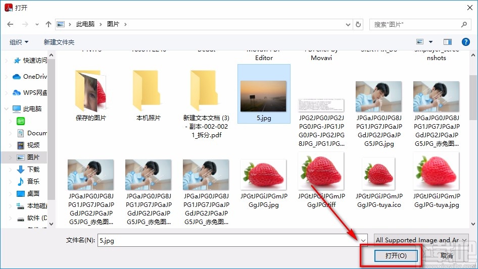 2.接着在文件添加页面中,我们选中需要转为PDF文件的图片后,再点击页面右下角的“打开”按钮就可以了。