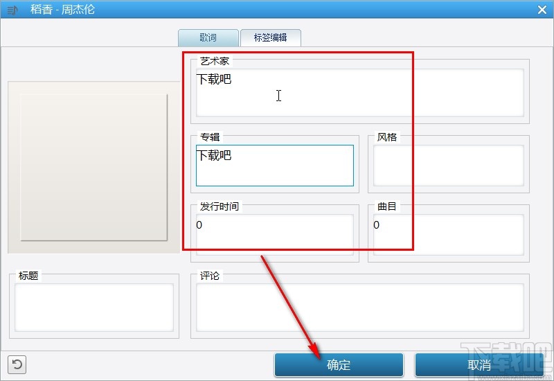 4.点击打开编辑音乐附加信息的界面之后,在上方找到标签编辑这个选项,点击切换到标签编辑功能界面,如下图中所示。