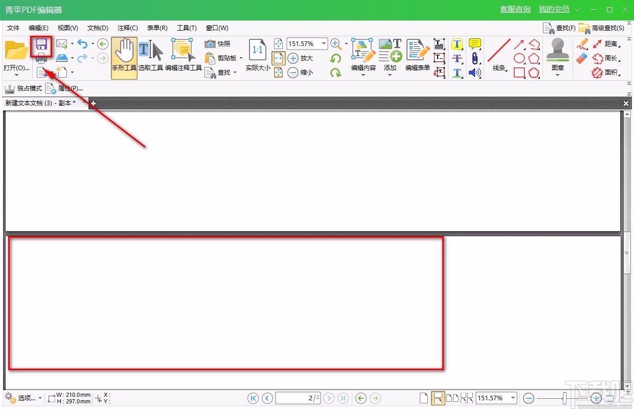 9.最后我们在页面上就可以查看到插入的空白页面;这时候点击界面左上方的保存按钮,就可以将插入页面后的PDF文件保存在电脑中。