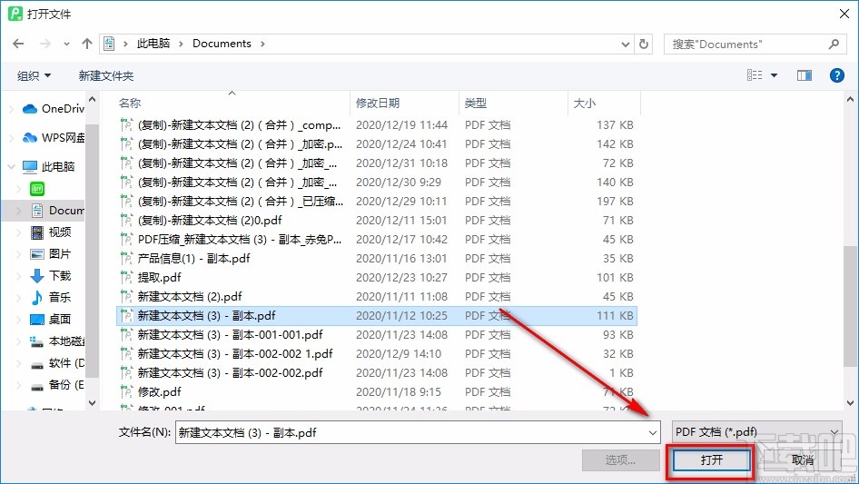 2.接着在文件添加页面中,我们选中需要插入空白页面的PDF文件后,再点击页面右下角的“打开”按钮即可。