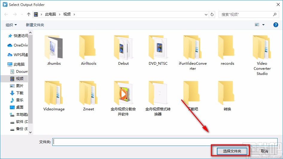 6.如果选择自定义文件夹,界面上就会出现一个文件保存路径选择页面,我们在页面中选择好文件的保存位置后,再点击页面右下角的“选择文件夹”按钮就可以了。
