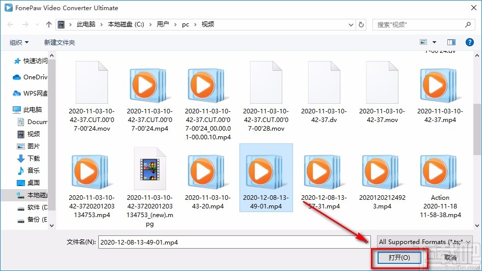 2.接着在文件添加页面中,我们选中需要转换格式的视频文件后,再点击页面右下角的“打开”按钮就可以了。