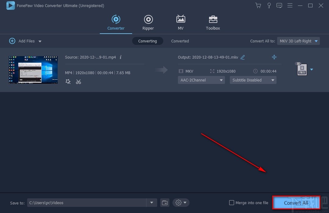 7.完成以上所有步骤后,我们在界面右下角找到“Convert All”按钮,点击该按钮就可以开始转换视频格式并将其保存在指定的文件夹中了。