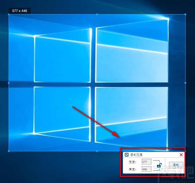 6.然后在录制框的右下角会出现一个录制范围窗口,我们在窗口找到“宽度”、“高度”两个选项,根据自己的需要在两个选项后面的文本框中输入具体的数值,并点击“录制”按钮,就可以开始录制电脑屏幕了。