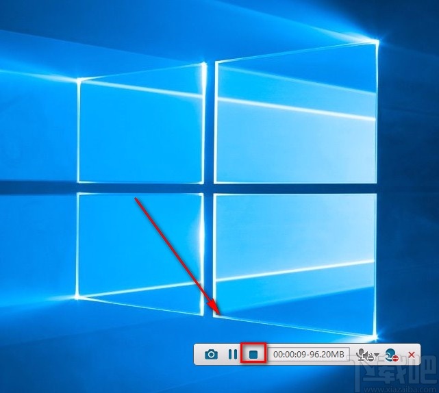 7.屏幕录制结束后,我们在录制框的右下角找到下图所示的停止按钮,点击该按钮就能停止录制电脑屏幕,并将录制的视频保存在刚刚设置的文件夹中。
