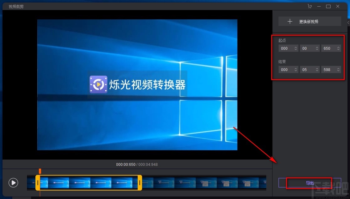 5.随后我们在界面右上方就可以看到视频剪切的起点时间和结束时间,这时候点击界面右下角的“导出”按钮即可。