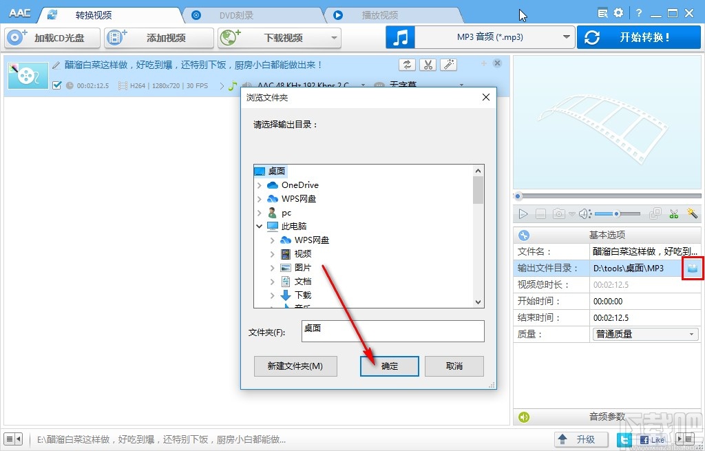 7.保存视频的设置之后,回到主界面,点击右边的这个文件夹图标,点击之后在出现的界面中选择好输出保存的文件夹位置。
