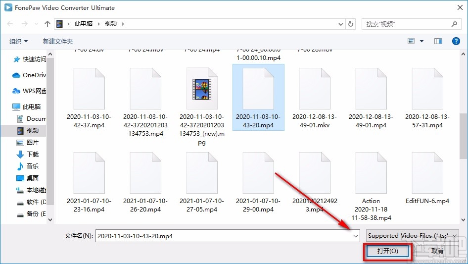 4.在文件添加页面中,我们选中需要消除噪音的视频后,再点击页面右下角的“打开”按钮就可以了。